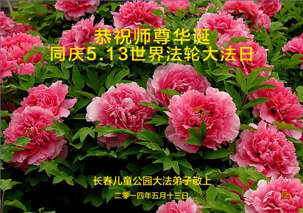 在今后的日子里我们唯有精進、精進、再精進!认真学好法做好三件事,多救人,快救人让师尊多一份欣慰,少一分操劳。 长春大法弟子5人学法小组 2014年5月5日 吉林省长春大法弟子恭祝师尊生日快乐!