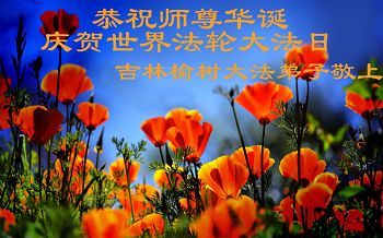 洪恩浩荡救吾心,感激涕零直到今。生生世世无以报,唯有尊师一片心。 吉林省长春市农安县一学法小组大法弟子恭祝慈悲伟大的师尊生日快乐!同祝世界法轮大法日暨师尊传法22周年!