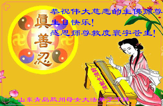 山东省青岛市胶州市一大法弟子恭贺法轮大法日!恭祝师尊生日快乐!