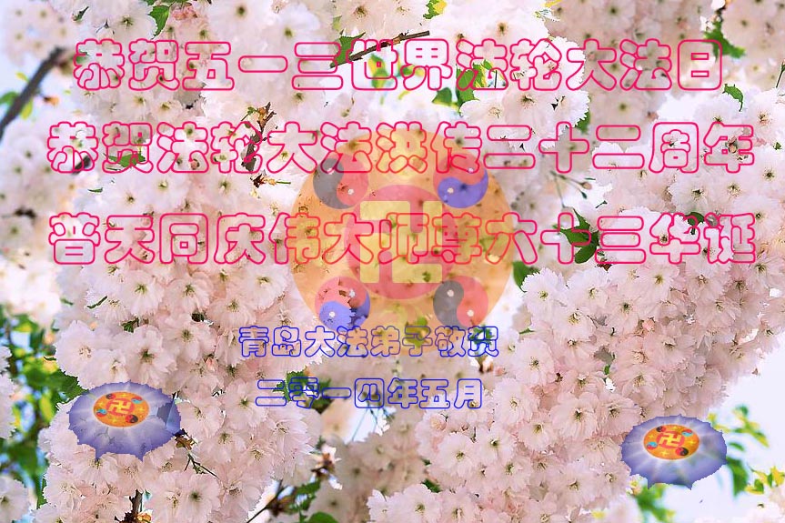 青岛大法弟子恭祝伟大的师尊生日快乐!同时恭贺五月十三日世界法轮大法日!