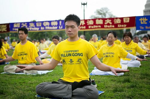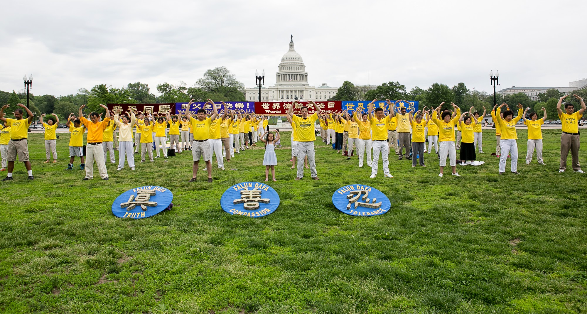 【明慧网二零一四年五月十二日】(明慧记者李静菲美国华盛顿DC报道)二零一四年五月十日,美国大华府地区的部分法轮功学员聚集在国会山,恭祝师父华诞、庆祝法轮大法洪传二十二周年。马里兰州参议院和众议院同时通过决议案,向法轮功创始人李洪志先生致以最诚挚的祝贺,表彰世界法轮大法日以及法轮功修炼者对真、善、忍的信仰。美国联邦参议员本•卡丁(Benjamin Cardin)向华盛顿DC法轮大法学会颁发特别奖励证书。 大华府地区法轮功学员在国会山前集体炼功 |