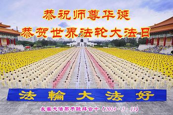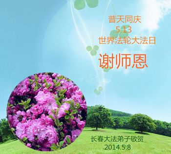 【明慧网二零一四年五月十三日】 吉林省长春市榆树市大法弟子恭祝师父华诞!普天同庆世界法轮大法日!