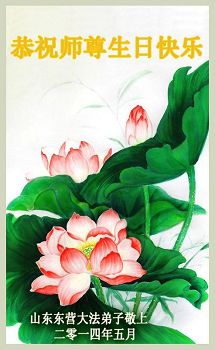 山东省威海市文登区一家大法弟子恭祝师父华诞暨5.13世界法轮大法日!