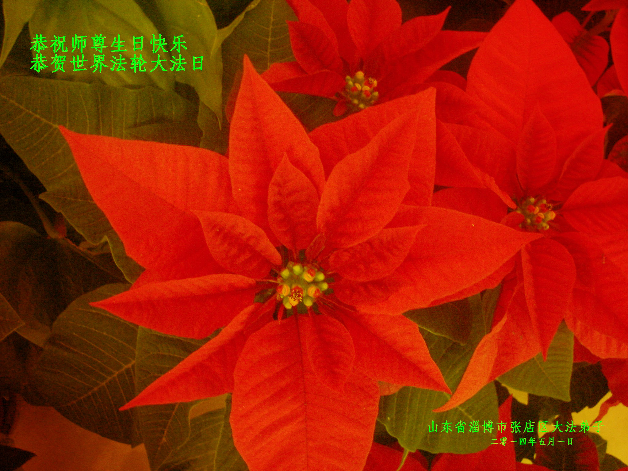 师尊传法二十二周年为救宇宙众生耗尽了心血,身体受到了很大的伤害,师尊您辛苦了! 弟子无以为报,唯有奉上一颗赤诚向善、敬师敬法的心,唯愿师尊笑、唯愿师尊生日快乐! 弟子一定谨遵师父教诲,做好三件事,圆满随师还,不负师父所望。 弟子跪拜谢师恩! 山东省泰安市新泰市大法弟子敬上 2014.5.4 山东省淄博南定一学法小组全体大法弟子恭祝慈悲伟大的师尊生日快乐!