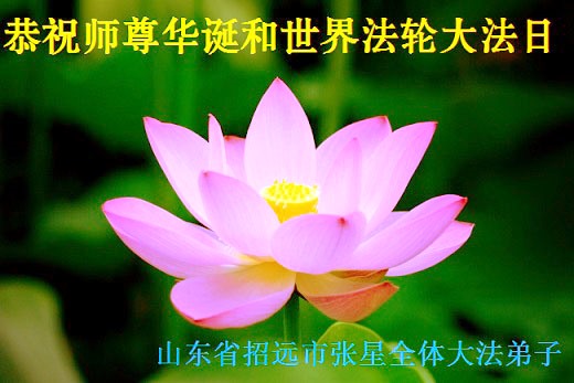 山东省烟台市招远市区一学法小组恭祝师父生日快乐!暨法轮大法日!