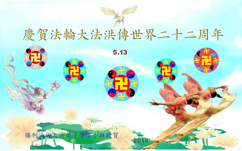 胜利油田一学法小组大法弟子恭祝师尊生日快乐!恭贺法轮大法洪传世界二十二周年!