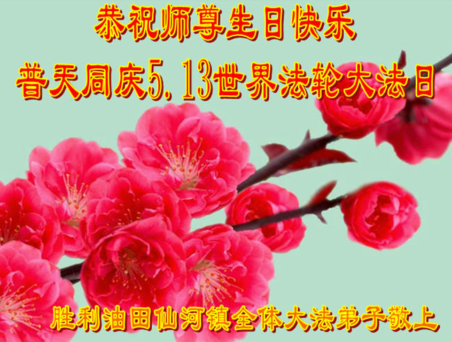 胜利油田仙河镇全体大法弟子恭祝师尊生日快乐!普天同庆5.13世界法轮大法日!