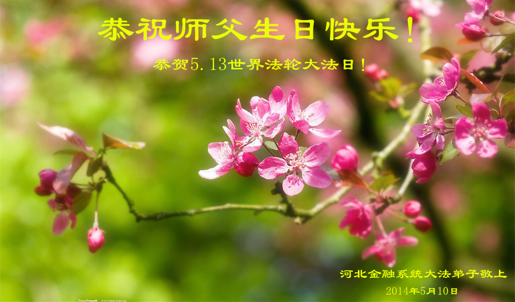 河北金融系统大法弟子恭祝慈悲伟大的师尊生日快乐!