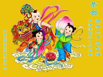 大陆供销社系统大法弟子恭贺师尊六十三华诞、大法洪传二十二周年!