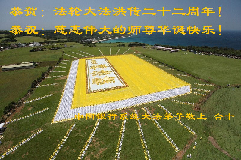 【明慧网二零一四年五月十三日】 中国银行大法弟子恭贺法轮大法洪传二十二周年!恭祝慈悲伟大的师尊华诞快乐!