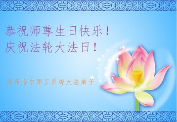 黑龙江省齐齐哈尔军工系统大法弟子恭祝师尊生日快乐!祝贺世界法轮大法日!祝贺法轮大法洪传二十二周年!