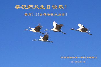 【明慧网二零一四年五月十三日】 河北围场大法弟子祝师父生日快乐!普天同庆世界法轮大法日!