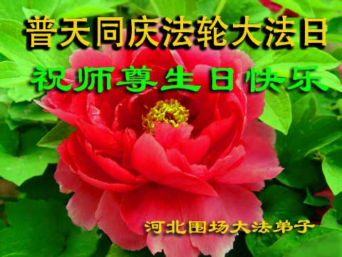 河北大法弟子祝师尊生日快乐!庆祝法轮大法洪传世界二十二周年!普天同庆法轮大法日!