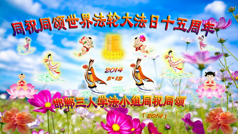 河北省邯郸三人学法小组大法弟子同祝同颂世界法轮大法日十五周年!