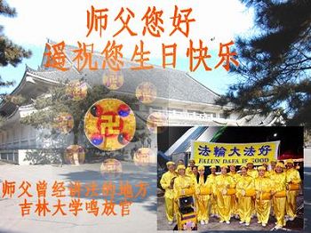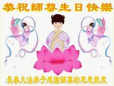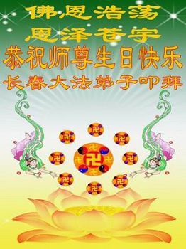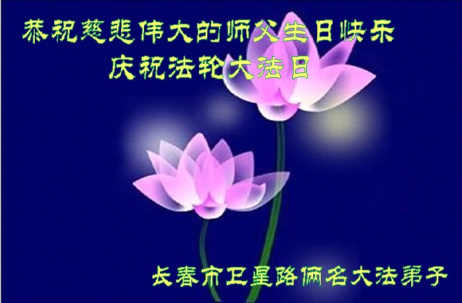 吉林省长春大法弟子恭祝慈悲伟大的师尊生日快乐暨世界法轮大法洪传二十二周年!