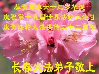 庆祝第十五届世界法轮大法日!庆贺法轮大法洪传二十二周年! 吉林省长春大法弟子恭祝慈悲伟大的师尊生日快乐!庆贺世界法轮大法日!