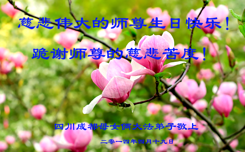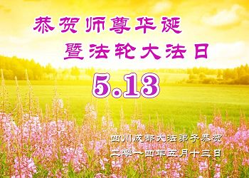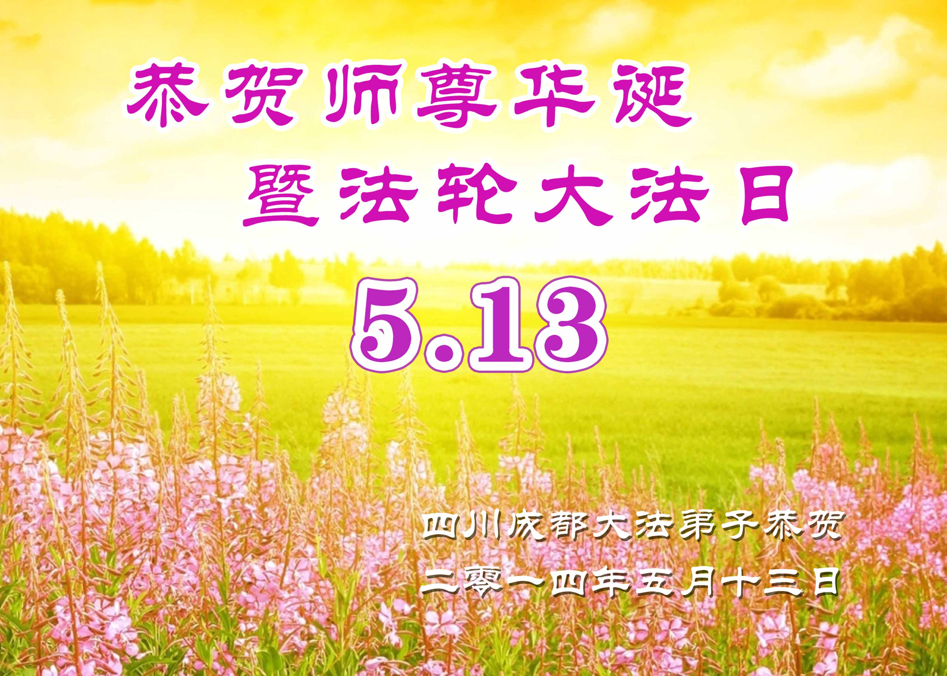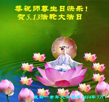 【明慧网二零一四年五月九日】 四川成都大法弟子恭祝师尊华诞暨法轮大法日!
