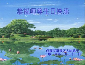 四川成都一学法小组大法弟子恭祝洪恩浩荡的恩师生日快乐!