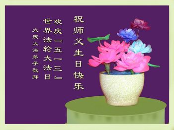 黑龙江省大庆市大法弟子(顺利)恭贺师尊生日快乐!普天同庆法轮大法洪传二十二周年暨第十五届世界法轮大法日!