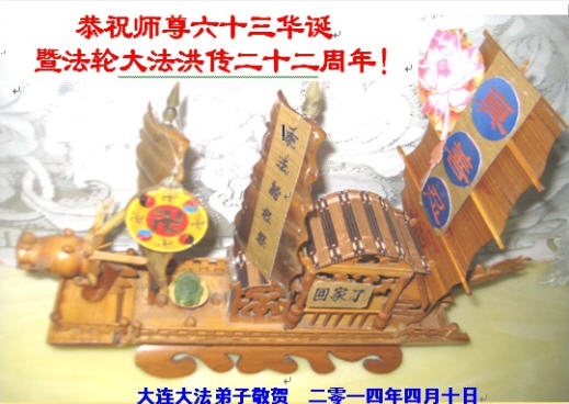 辽宁省大连工商局大法弟子及家人普天同庆法轮大法日!恭祝师尊生日快乐!
