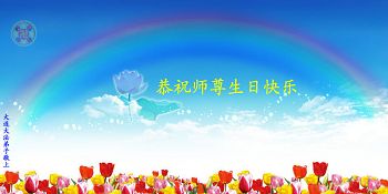 五月十三圣日逢,普天同庆众欢腾。 愿师生辰多欣慰,焚香叩拜表心情。 法正人间近咫尺,奋起全力救众生。 佛光漫宇明朝现,喜叹金莲果已成。 辽宁省大连一大法弟子恭祝师尊生日快乐!恭贺世界法轮大法日!