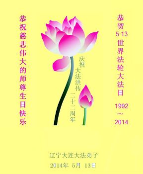 辽宁省大连全体大法弟子恭贺法轮大法洪传22周年暨5.13世界法轮大法日!