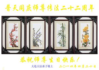 辽宁省大连大法弟子恭祝师尊生日快乐!普天同庆师尊传法22周年!