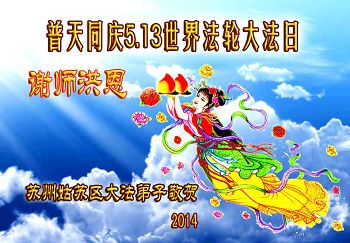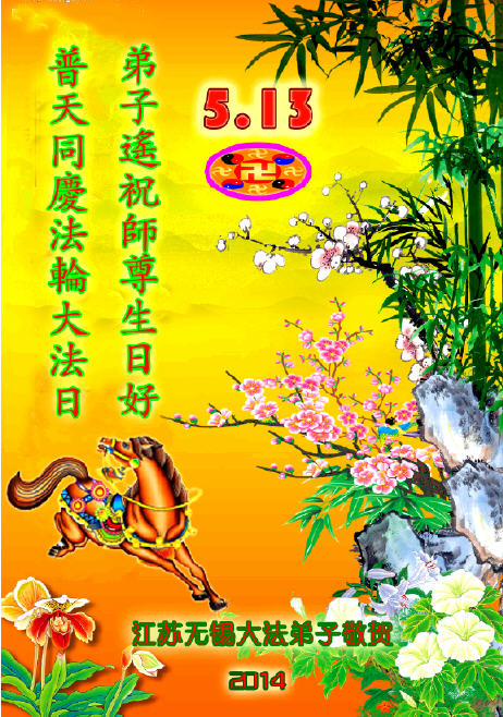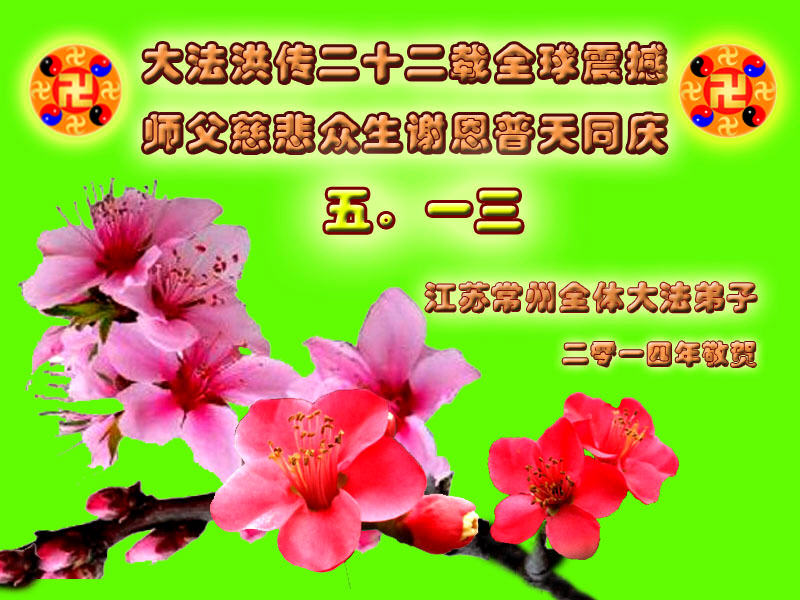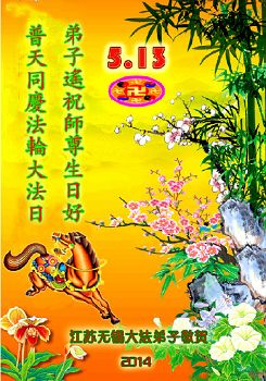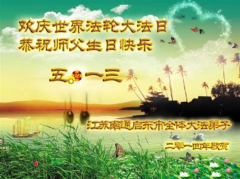 【明慧网二零一四年五月九日】 江苏省全体大法弟子欢庆5.13世界法轮大法日!祝师尊生日快乐!
