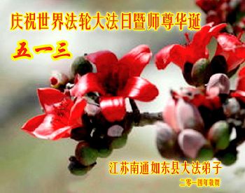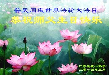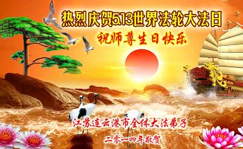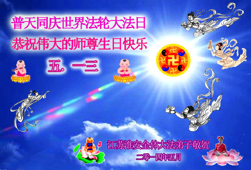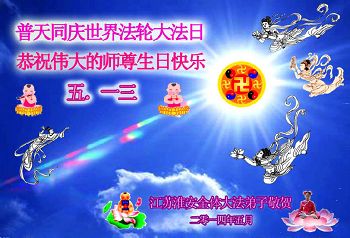 讲真相遭迫害神震天怒 大法徒助师行洪宇称颂 江苏盐城一大法弟子恭祝师父生日快乐!普天同庆世界法轮大法日!