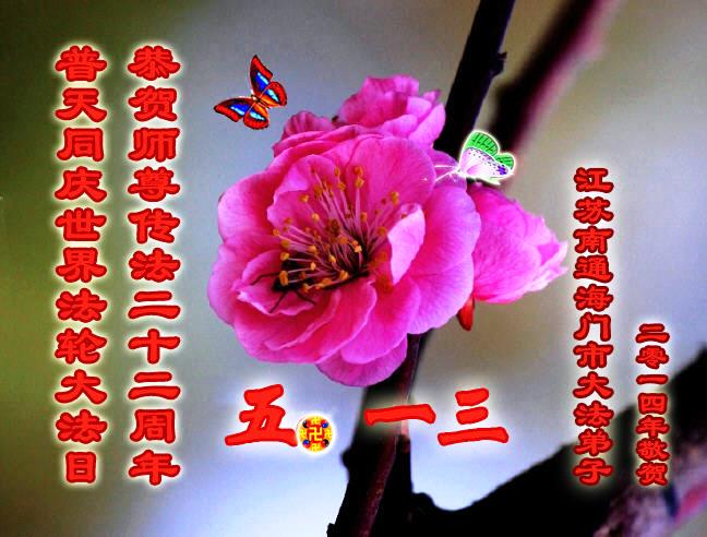 江苏南通海门市全体大法弟子普天同庆世界法轮大法日!恭贺师尊传法二十二周年!