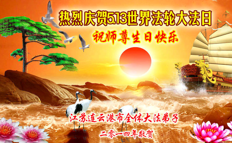 江苏连云港市大法弟子热烈庆贺5.13世界法轮大法日!祝师尊生日快乐!
