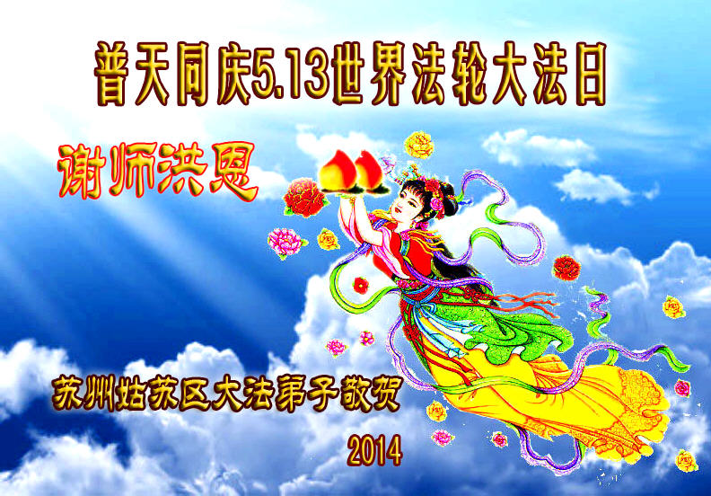 法轮大法洪传二十二载创辉煌 众生得救叩谢师尊洪恩苍宇间 江苏省苏州全体大法弟子贺5.13世界法轮大法日!恭祝伟大的师尊生日快乐!