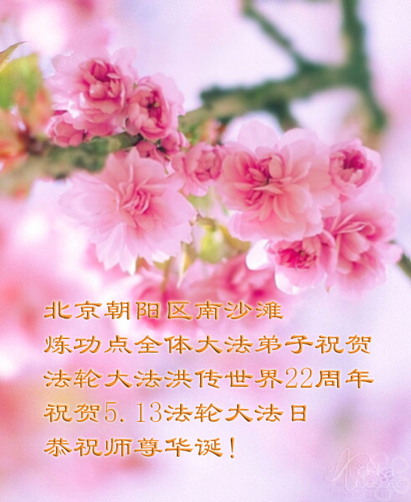 北京丰台区朱家坟地区大法弟子祝师尊生日快乐!祝贺法轮大法传法22周年!