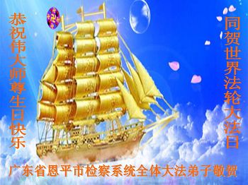 【明慧网二零一四年五月九日】 广东省江门市恩平市检察系统全体大法弟子恭祝师尊生日快乐!普天同庆世界法轮大法日!