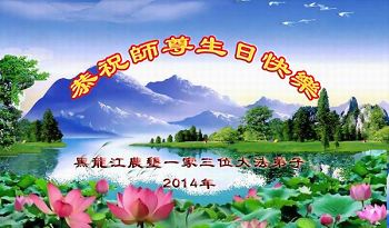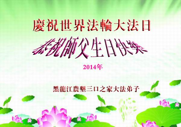 黑龙江农垦三口之家大法弟子庆祝世界法轮大法日!恭祝师父生日快乐!
