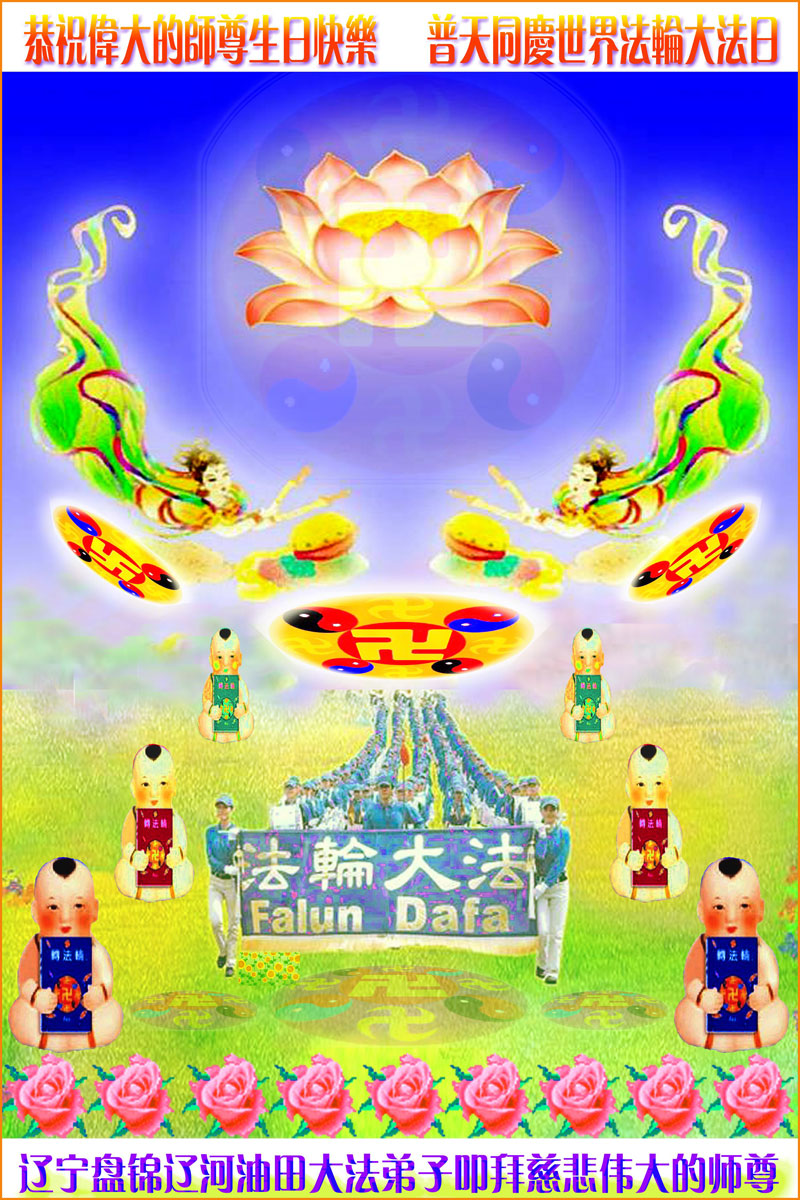 辽宁盘锦辽河油田大法弟子恭祝伟大的师尊生日快乐!普天同庆世界法轮大法日!