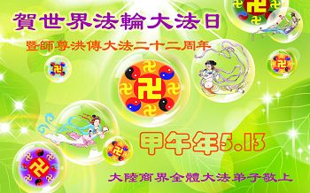 大陆商界全体大法弟子贺世界法轮大法日暨师尊洪传大法二十二周年!