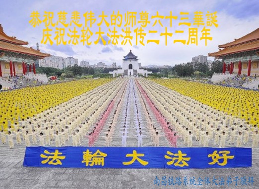 江西省南昌铁路系统全体大法弟子恭祝慈悲伟大的师尊六十三华诞暨法轮大法洪传二十二周年!