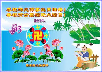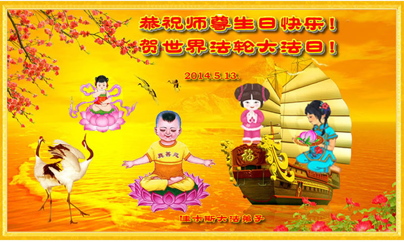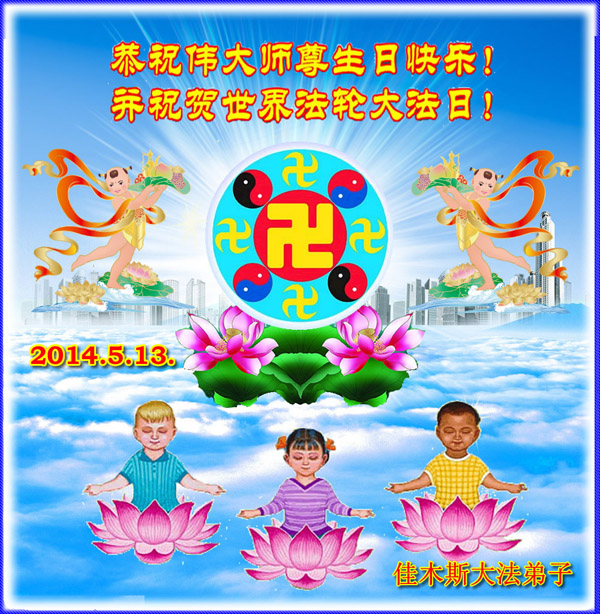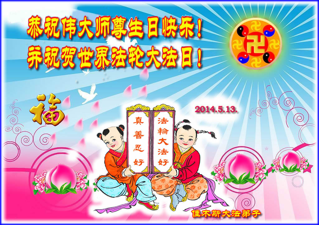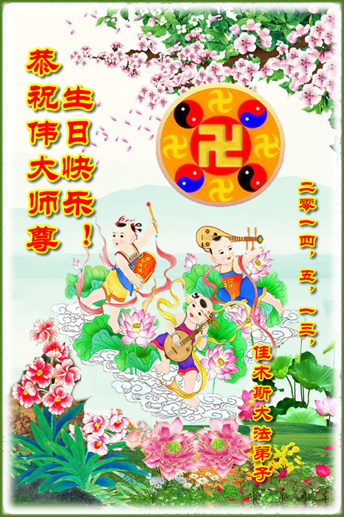 【明慧网二零一四年五月九日】 黑龙江省佳木斯大法弟子恭祝伟大师尊生日快乐!
