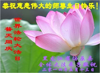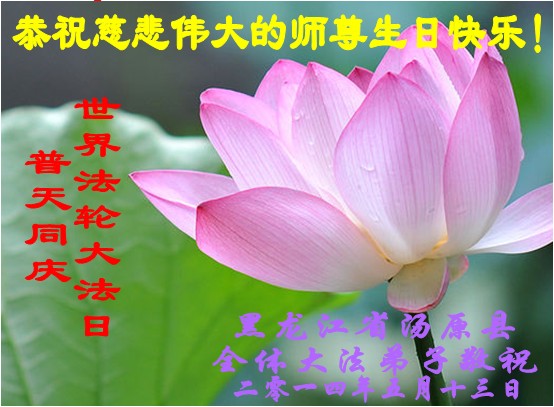 黑龙江省佳木斯市汤原县全体大法弟子恭祝慈悲伟大的师尊生日快乐!与全球大法弟子同庆伟大殊胜的世界法轮大法日!