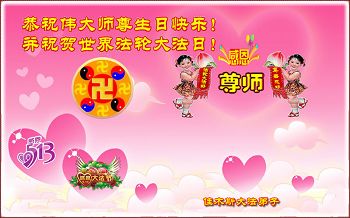 正法走到今天,弟子们修炼路上走过的每一步都离不开师尊的呵护。弟子们所闯过的道道魔关都凝聚着师父的血汗。万语千言,感恩不尽,我们无法用人类的语言来表达。弟子们唯有遵照师尊教诲学好法、炼好功、认真做好三件事,放下执着心,与同修配合好多救人,一定达到师父要求的标准,坚定实修,一定不辜负恩师的慈悲苦度,兑现史前誓约,圆满随师还家园。 黑龙江佳木斯夫妇大法弟子向伟大的师尊问候!祝师尊生日快乐!祝法轮大法洪传二十二周年!祝第十五届法轮大法日!