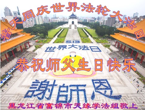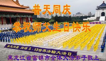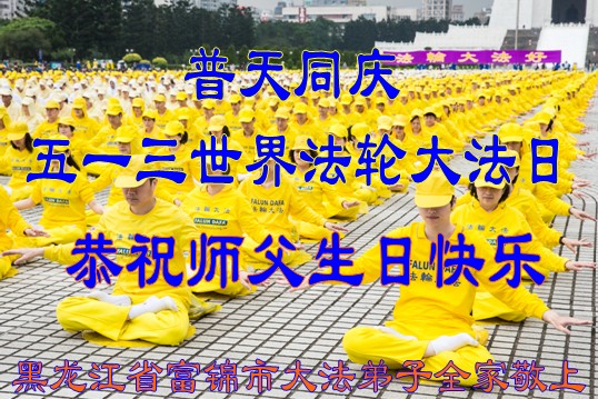 黑龙江省佳木斯市富锦市全体大法弟子普天同庆世界法轮大法日!恭祝师父生日快乐!