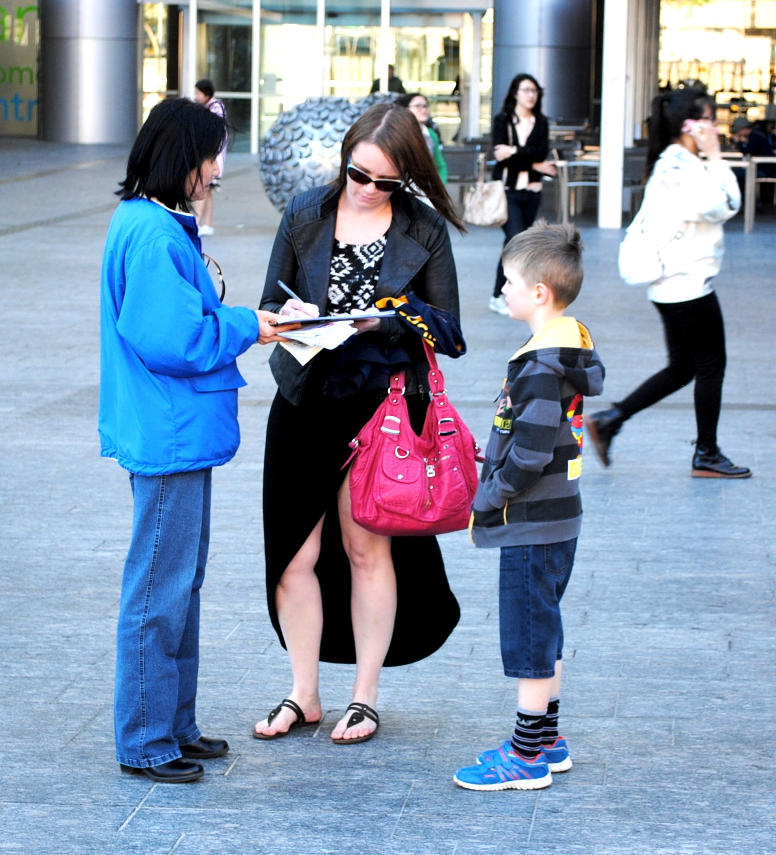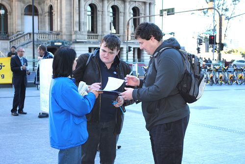 图4-6:澳洲民众在请愿书上签名支持法轮功。 |