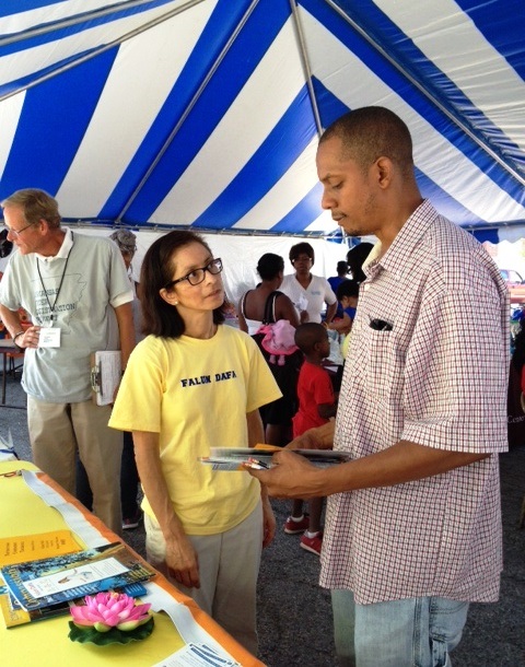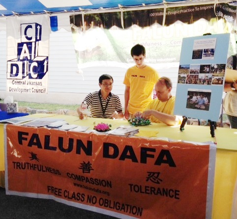 每年一度的公民人权社区节(Civil Rights Summit and Community Festival)今年已是第八届。九月二十日上午十点整,活动在市区有名的建筑物——希顿社区资源中心大厦(Hinton Neighborhood Resource Center)附近的室外广场举行。阿肯色州法轮大法学会应邀参加,并被安排在一个位置很好的展位。 展位上悬挂的“法轮大法”横幅很显眼,很多市民远远就看到了。有位中年男士说,他见过法轮功学员在公园晨炼,动作优美,音乐也很好听。得知这个功法免费教功,所有资料网上免费下载,他很是震惊:这么好的功法,居然免费?学员告诉他,这是无价之宝,无法用金钱来衡量。他点点头,会心地笑了,临走前,他又一次认真核对了炼功点的信息。 一位白人女学生,大约十五岁左右,被展桌上摆放的纸折莲花吸引,她不好意思一次拿几个,所以辗转来了好几次。与她交谈时,她羞涩地解释说莲花太好看了,她太喜欢了,所以也想为其他朋友带几个。学员教她念坠饰上的中文:“法轮大法好,真善忍好”,并为她解释其内涵。她很高兴地表示,要把莲花挂在自家的车上,每天都给自己带来好运,好心情。 一位来自印度尼西亚的年轻人站在展位前很久,认真阅读每个展板。当看到揭露中共活摘法轮功学员器官的文章时,他走过来问学员:这是魔鬼行为,这样的事情今天还在发生吗?他很气愤,为什么全世界的政府对中共的暴行保持沉默?他还说,他们那里也有很多人在炼法轮功。 下午一点左右,法轮功学员们应邀上台做功法演示,人们被优美祥和的功法吸引,纷纷拿起手机拍照,留下这美好的瞬间。