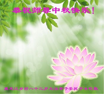 黑龙江乡村八十三岁大法弟子委托子女代她恭祝慈悲伟大的师尊中秋快乐!