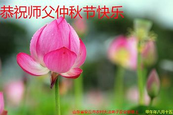【明慧网二零一四年九月七日】 山东省济宁农村大法弟子恭祝慈悲伟大的师尊中秋快乐!