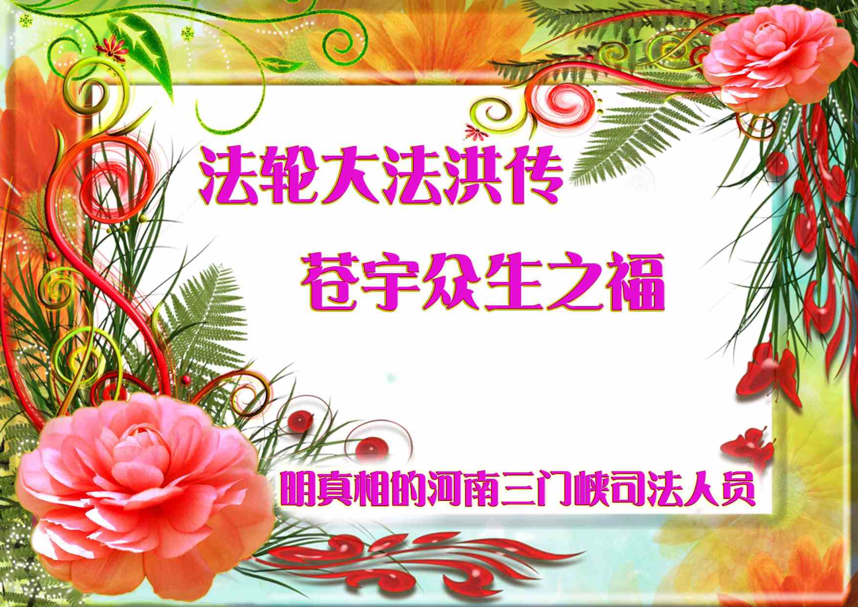 我们感恩李大师对我们的慈悲救度!善有善报,恶有恶报,不是不报,时候未到。现在江氏流氓集团的高官成员大量的落马,就是现世报应的表现。 中共宣传邪恶的无神论,不叫人相信神佛,不叫人相信善恶报应,而且中共邪*党-迫害法轮功犯下了滔天大罪,决定了其必将被灭亡的下场,现在很多人都看明白了,中共挺不了几天了! 明真相的河南三门峡司法人员恭祝慈悲伟大的李大师中秋快乐!
