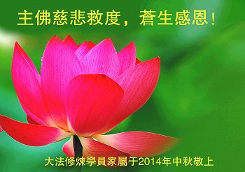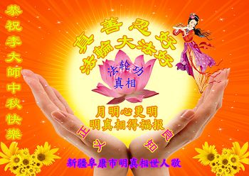 我们跪谢李大师救度洪恩!中共邪*党-一直是谎言治国,不让人们说真话,遏制言论自由,但是您的弟子无惧邪*党-的淫威,依然用大慈大悲的心态拯救着被邪*党-谎言毒害的心灵,给被谎言毒害的世人选择自己未来的机会。 我们感佩法轮大法修炼者大善大忍的无私胸怀,我们一定尽自己最大的努力去告诉人们真相,让更多的世人拥有美好的未来! 明真相的山东菏泽司法人员恭祝慈悲伟大的李大师中秋快乐!