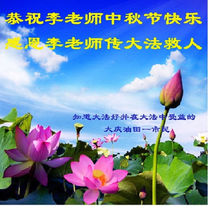 尊敬的李大师,我们衷心感谢您对我们的慈悲救度! 由于家人修炼法轮大法,我们也跟着受益无穷,因为我们从法轮功弟子身上看到了常人身上没有的那种高贵而祥和的气质,在他们面前,我们想做坏事也做不到,这都是李大师法力无边,悉心教导的结果。我们一定将法轮大法的美好和神奇告诉给身边的每一个人,让更多的人受益! 黑龙江大庆市明白真相之人恭祝慈悲伟大的李老师中秋快乐!