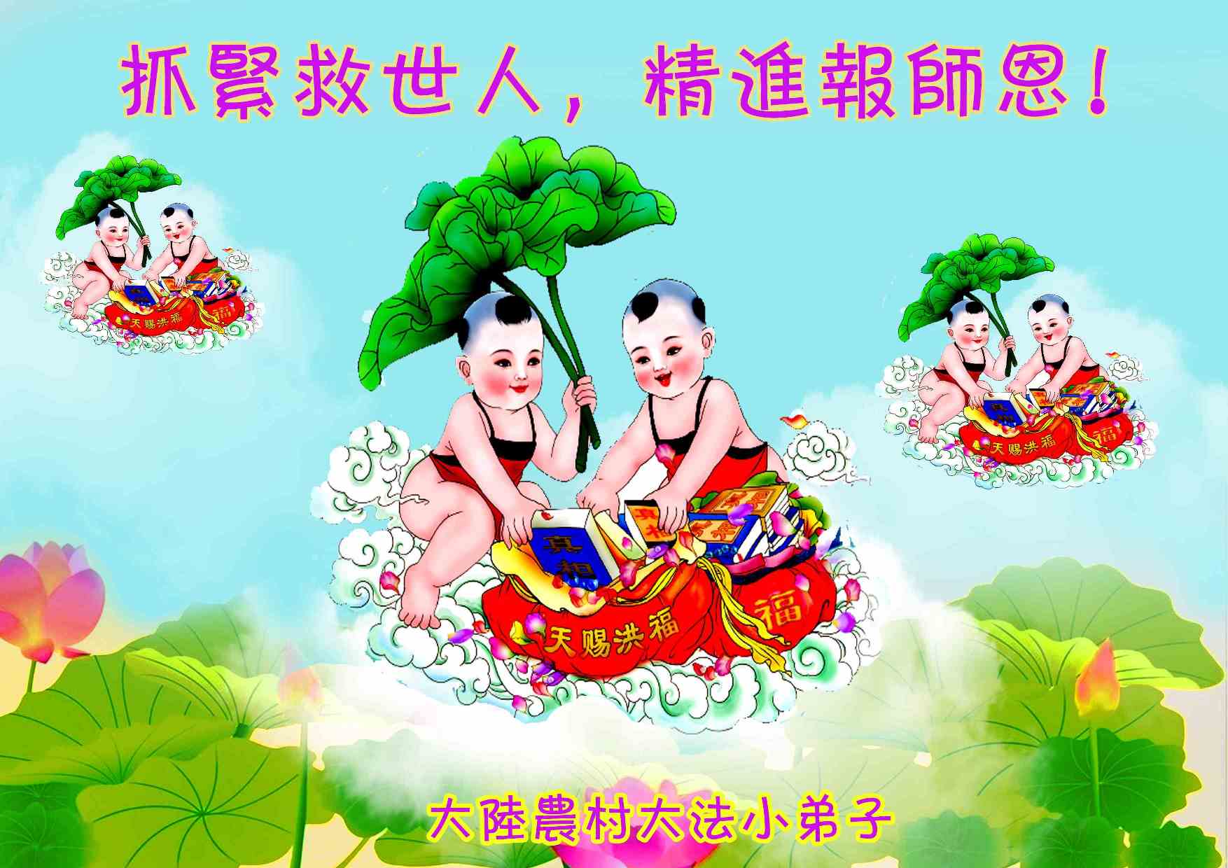 小弟子想念师父!祈盼早日见到师父! 弟子一定听师父的话,认认真真的学法,多发正念,清除邪恶,减少邪恶对大法弟子的迫害,多救人,让师父多一点欣慰,少一分操劳,争取早一天跟师父回家! 黑龙江乡村八十三岁大法弟子委托女儿代她恭祝慈悲伟大的师尊中秋快乐!